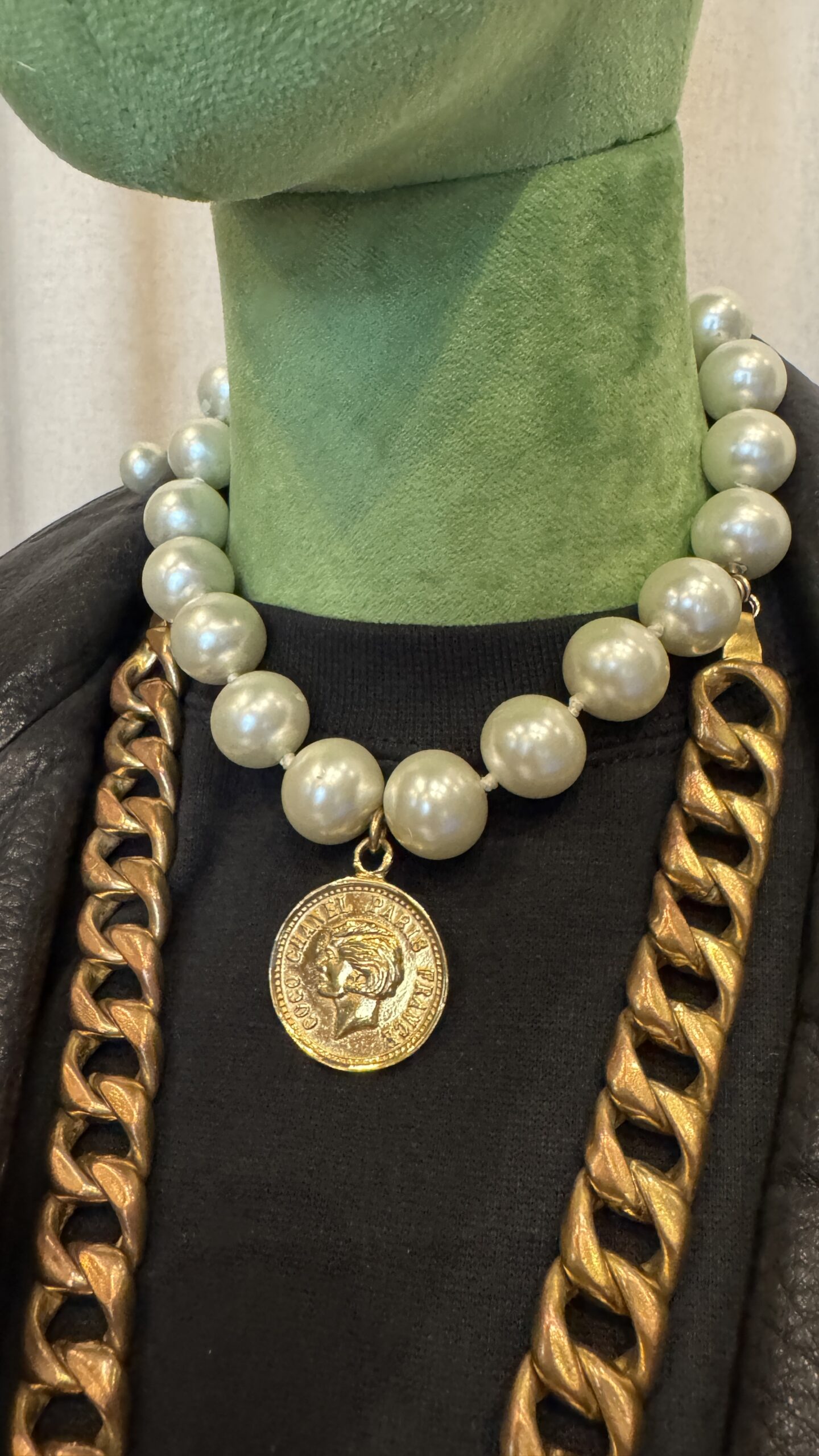 Condition – very good, scratches and wear throughout metal, slight coating loss on one pearl