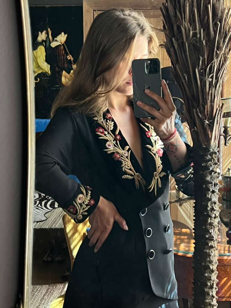 Karl Lagerfeld vintage two-piece set, blazer and top with embroidered accent