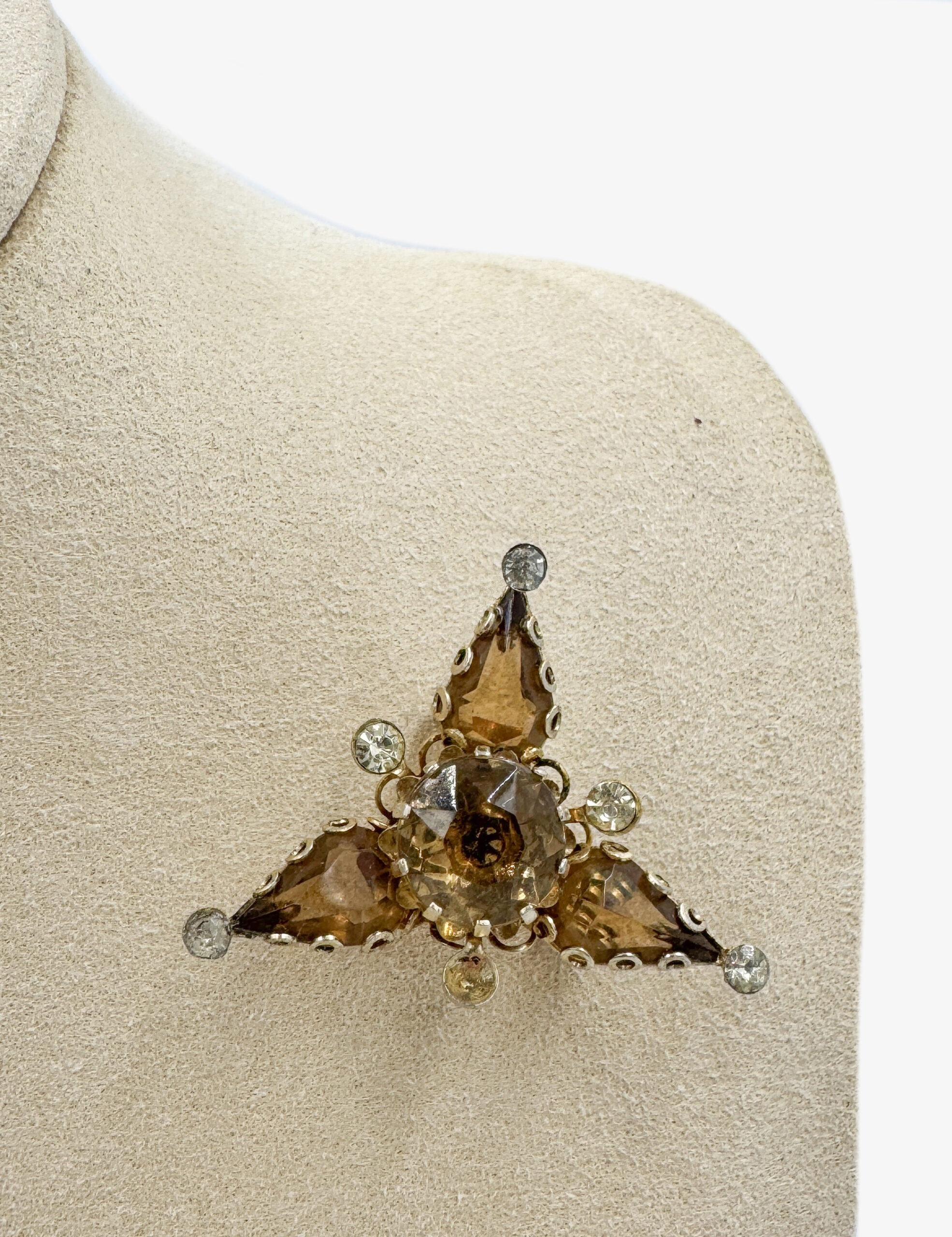 Vintage brooch with brown crystals