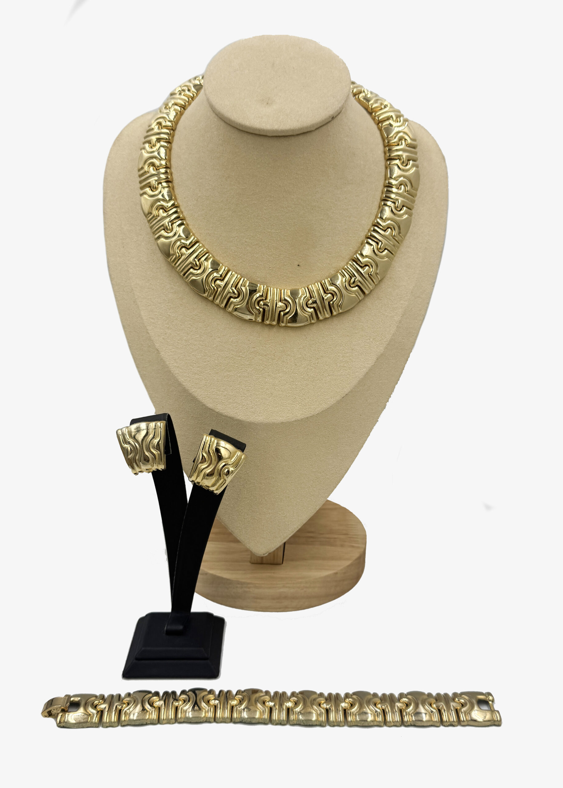 Vintage gold-tone three-pieces set consisting of a necklace, bracelet and clips