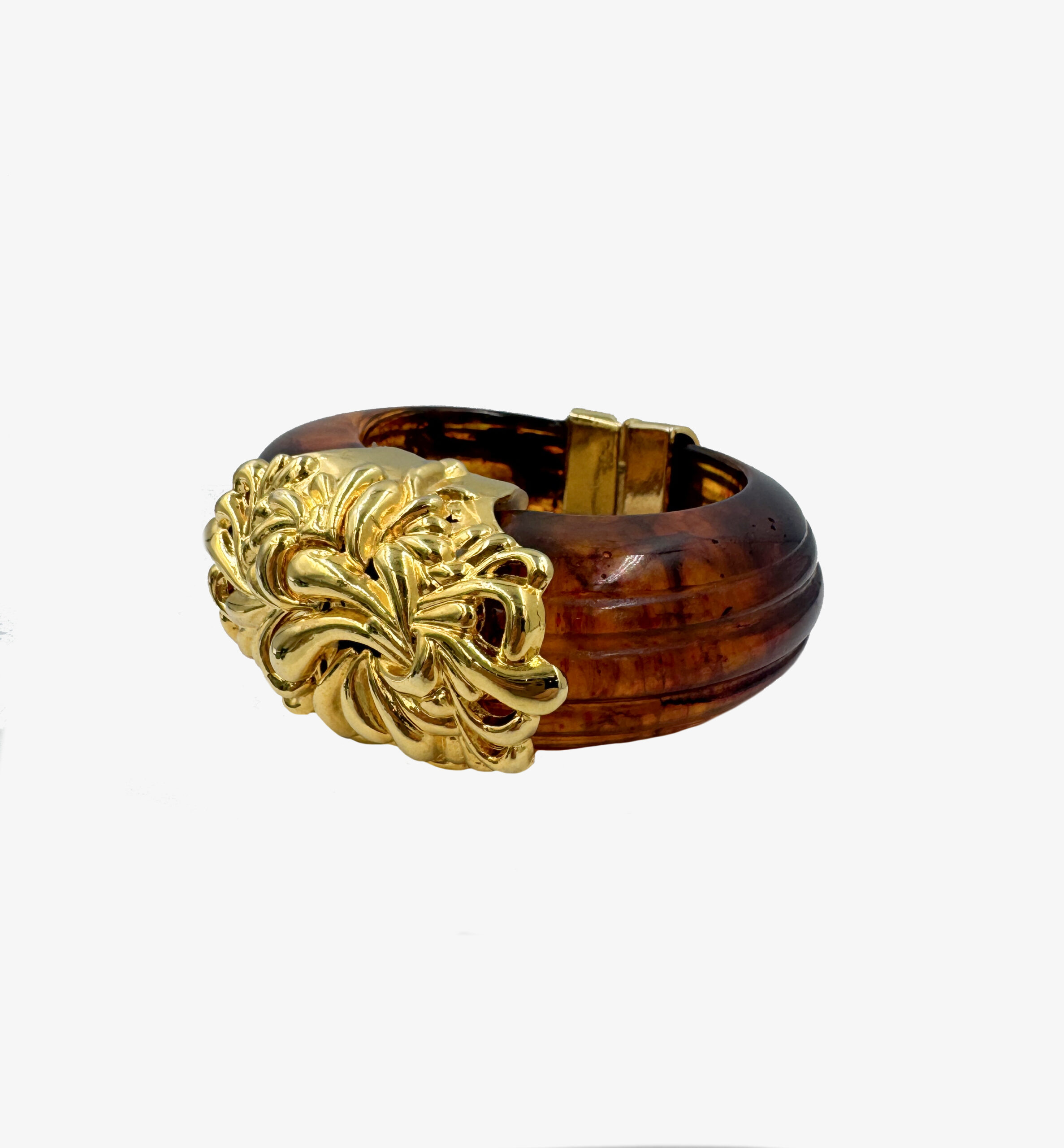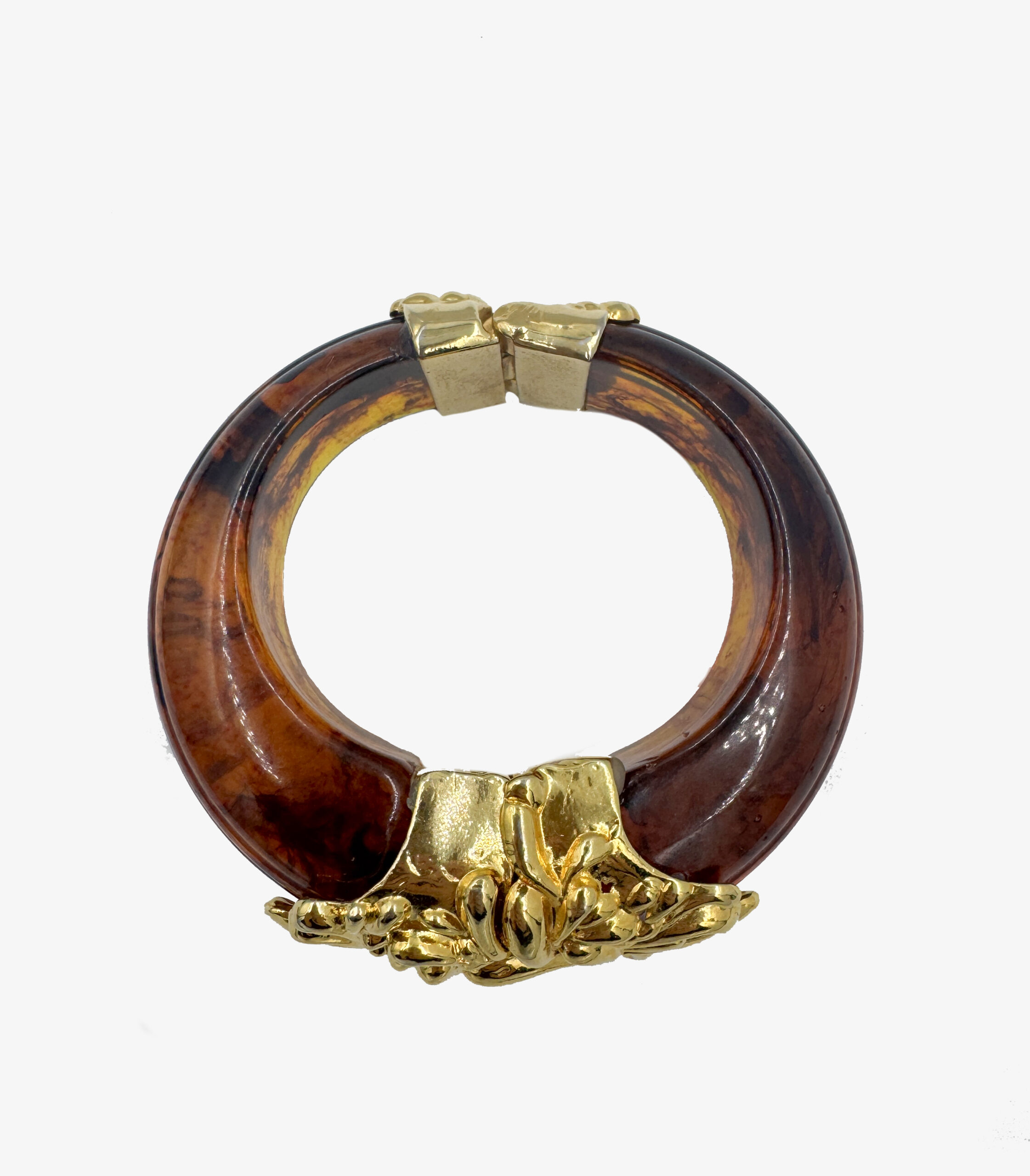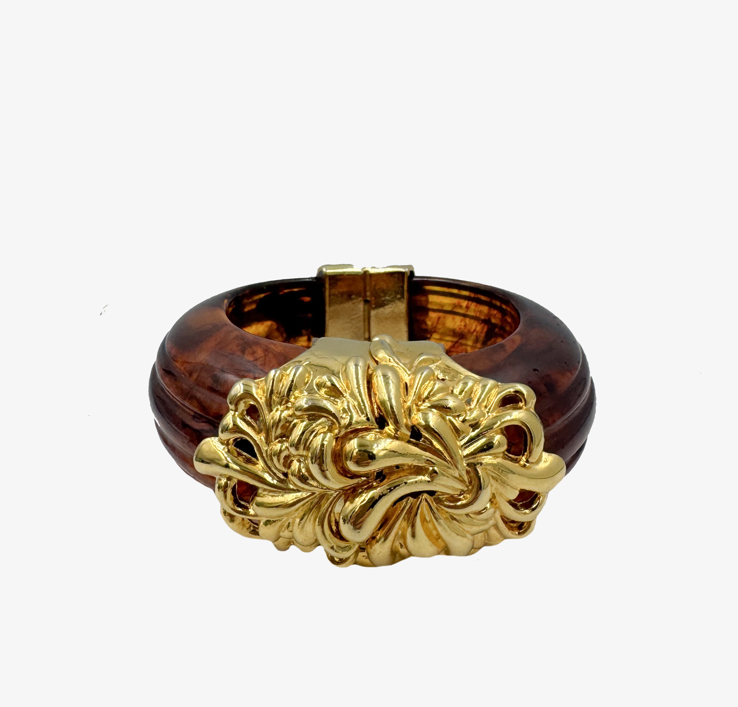 Vintage Inna Cytrine Paris brown lucite bracelet with gold-tone clasp