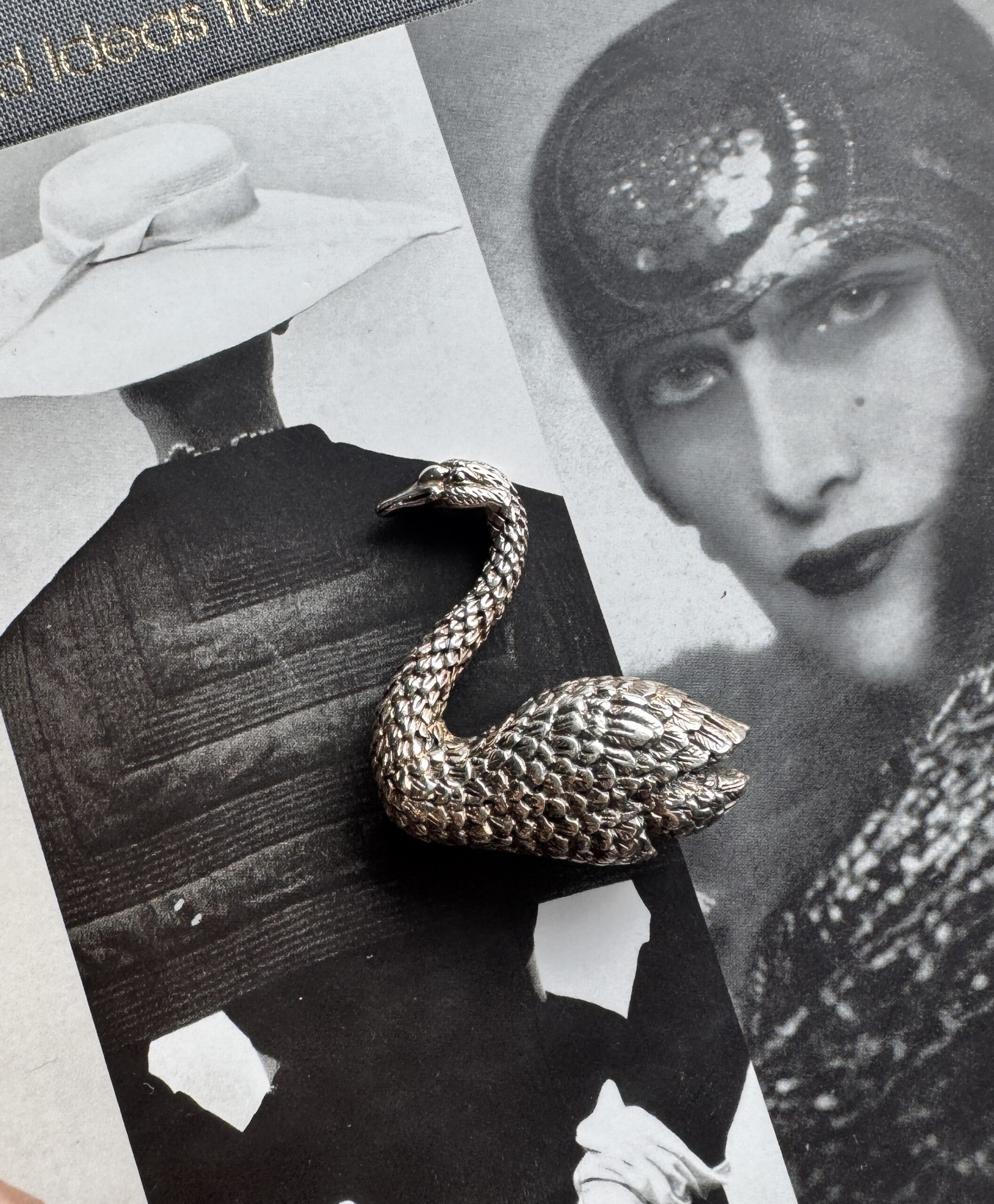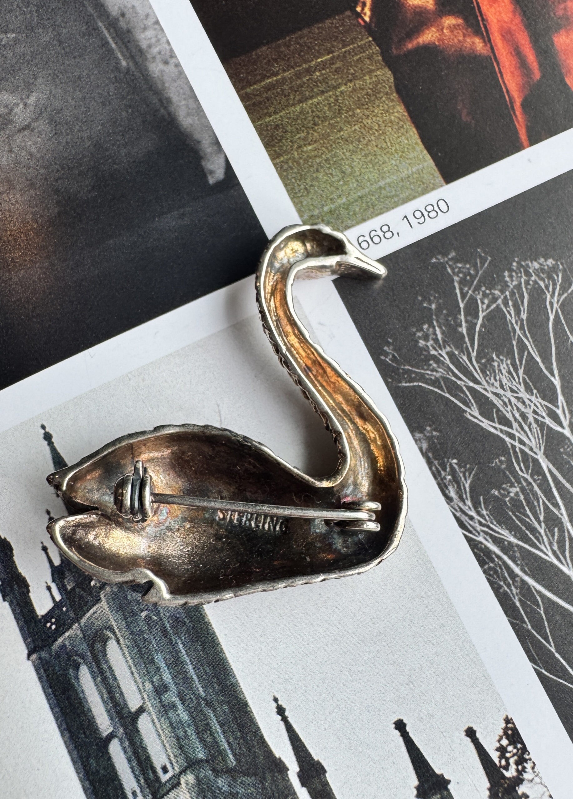 Vintage silver swan brooch